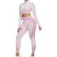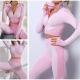 طقم تمرين نسائي - زي رياضي بدون درزات 2 قطعة باللون الوردي